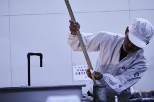 In 2020, “Hekiungura” a sake brewery and the first of its kind to be built on the premises of a national university, was established at Obihiro University of Agriculture and Veterinary Medicine. Water from the Satsunai River system, which flows from the Hidaka Mountains, and which has been recognized numerous times as one of the most transparent streams in Japan, is used for brewing sake, and the rice used is sourced in Hokkaido. Using a very traditional hand-brewing process, a high-quality sake is brewed. To raise future brewers and enhance local creativity, studies and research on fermentation and distillation are conducted together with local affiliates and the university.