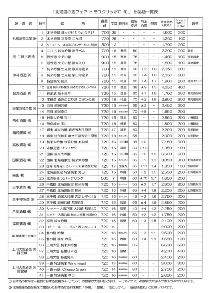 また、2月2日(月)午前12時までボトル購入の事前予約も可能(順号35「北の勝 純米 吟風」を除く)です。